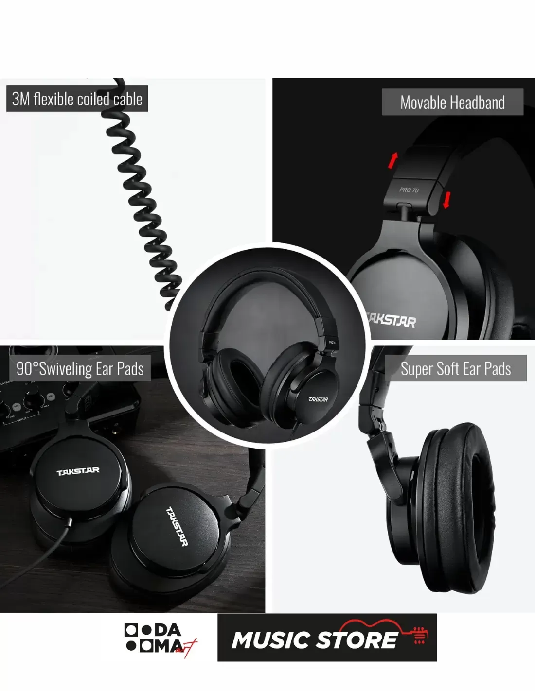 The Takstar PRO70 is a closed-back studio monitor headphone designed for recording, mixing, and music production. Featuring new-generation Ø40 mm neodymium dynamic drivers with a composite diaphragm, it delivers deep bass, accurate mids, and sweet, clear highs with exceptional precision.
