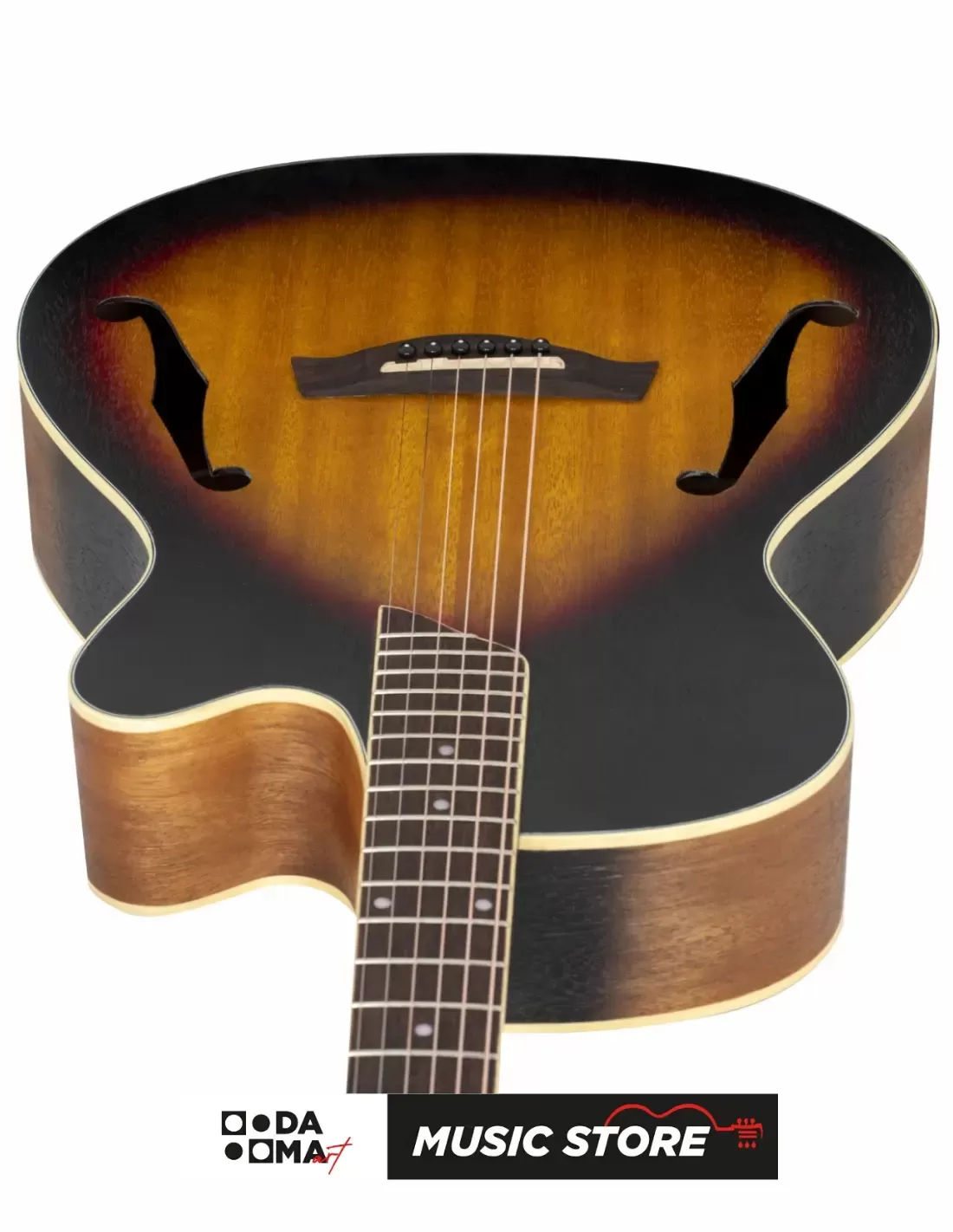 Верхняя дека из ели и корпус из меранти создают сбалансированное и чёткое звучание.